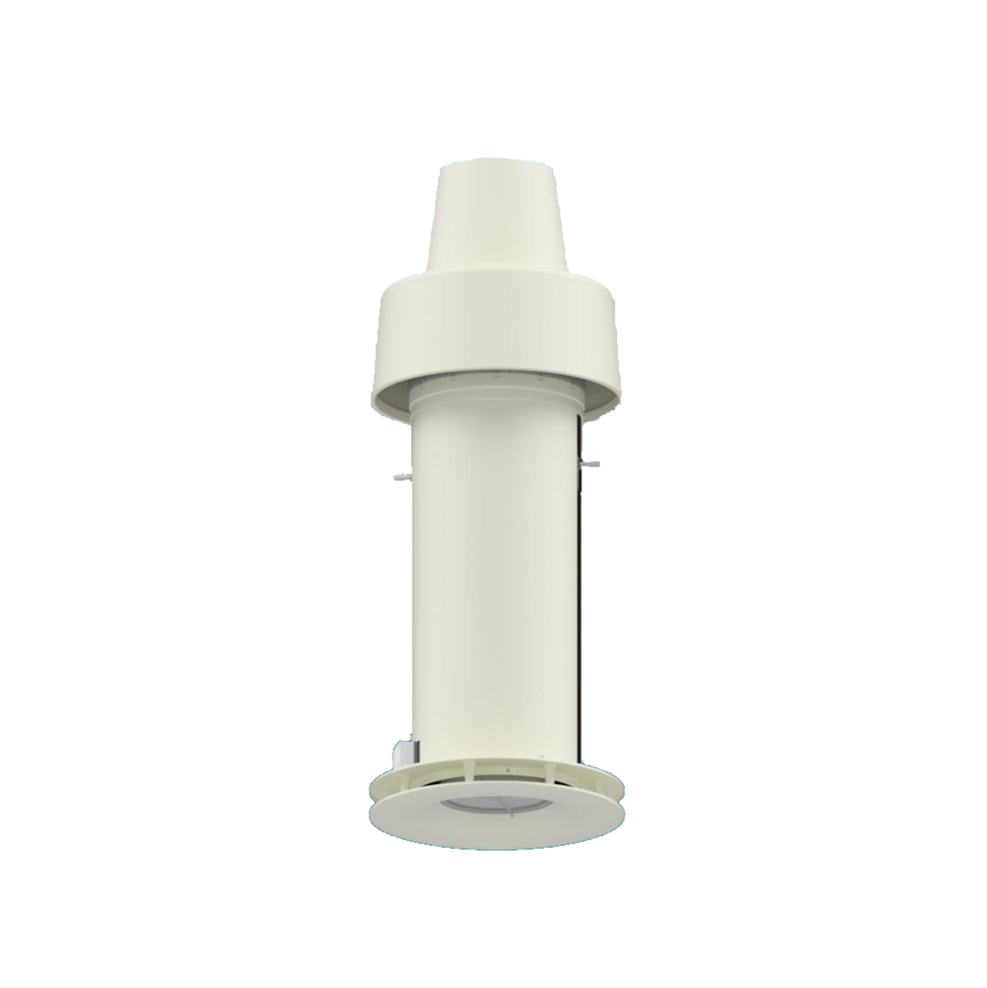 TX 3100A monteres på taget med kun én gennemføring, og uden tilslutning af yderligere rør. Den højtydende og roterende varmeveksler, genvinder varmen fra udsugningsluften som overføres til indblæsningsluften. Dette giver et komfortabelt luftskifte. Veksleren er udstyret med en renblæsningssektor, som forhindrer at der kommer forurenet luft tilbage i lokalet.